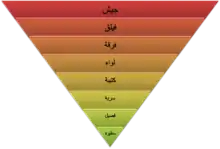 | ••• | فصيلة | PLATOON , TROOP | ملازم إلى نقيب | من 2+ جماعات-حظائر | من 26 إلى 55 |