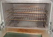 وتوفر بعض الأفران العديد من الإمكانيات التي تساعد على التنظيف. حيث تحتوي الأفران التي يتم تنظيفها باستمرار على غرفة فرن مغطاة سطح حفاز والذي يساعد على تحطيم (أكسدة) الأطعمة التي تتناثر وتنسكب مع مرور الوقت. تستخدم الأفران ذاتية التنظيف التحلل الحراري (الحرارة الشديدة) لأكسدة الأوساخ. وقد توفر أفران البخار دورة امتصاص رطبة لتفكيك الأوساخ، مما يسهل عملية الإزالة اليدوية. وفي حالة عدم وجود أي من الطرق الخاصة، فإنه يتم استخدام منظفات الأفران الكيميائية في بعض الأحيان أو طريقة الطراز القديم التي تتضمن الحك.