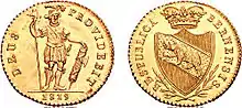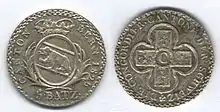 صدرت القطع المعدنية بفئات 1 و2 و2½ و5 رابن و½ و1 باتزن و2½ و5 باتزن فضية و1 و2 و4 فرنك. كما استخدمت برن الإكو و6 ليفر الفرنسي كمعادل لفئة 40 باتزن.