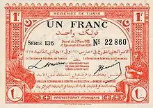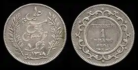 ![]() نقد بقيمة 1 فرنك تونسي، أصدر عام 1891 | ||||