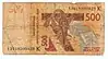 500 | نحاس ونيكل ونحاس أصفر | شعار البنك المركزي لدول غرب أفريقيا.[7] | تمثل الزخارف منتجات التصدير الزراعية الرئيسية للمنطقة (الفول السوداني والكاكاو والبن والقطن).[7] | 2003 |