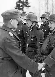 - الصليب الألماني الذهبي في 22 نوفمبر 1941 في منصب إس إس - شتاندارتن فوهرر في إس إس-فوج"نورلاند" [6]