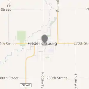 - "صفحة فريدريكسبورغ (أيوا) في GeoNames ID". GeoNames ID. اطلع عليه بتاريخ 6 مارس 2021. الوسيط