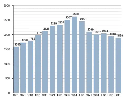 في سنة 1861 بلغ عدد السكان 1٬585 نسمة، وتطور العدد ليصل في سنة 2011 لـ 1٬889 نسمة.