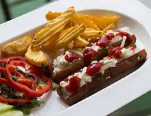 في بلجيكا وشمال فرنسا، تقدم مع خيار من الصلصة، وتباع في طرق متنوعة، مثلا مع البصل أو في كعكة طويلة أو قطعة من الرغيف الفرنسي أو على شكل كباب أو عادية.