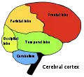 ![]() السطح الجانبي (الوحشي) من نصف الكرة المخية، يُظهر أربعة فصوص. السطح الجانبي (الوحشي) من نصف الكرة المخية، يُظهر أربعة فصوص. | |