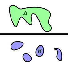 في الأعلى، فضاء متصل. في الأسفل فضاء غير متصل.