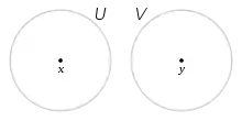 النقطتين x وy منفصلتين عن بعضهما في الجوارات U وV على الترتيب ضمن فضاء هاوسدورف.