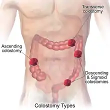 - إزالة جزء من القولون (على سبيل المثال بسبب سرطان القولون، أو التهاب الردب، أو الإصابات إلخ)، بحيث أنه لم يعد ممكن للبراز الخروج عن طريق فتحة الشرج.