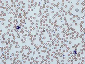 ![]() صورة مجهرية من دم مصاب بفقر الدم الناجم عن عوز الحديد صورة مجهرية من دم مصاب بفقر الدم الناجم عن عوز الحديد | |