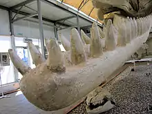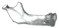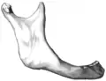 الشكل 5: فك سفلي لمضغة بشرية بطول 95 مم.، منظر خارجي. تبدو نوى الغضروف مرقطة.
