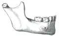 الشكل 3: فك سفلي لمضغة بشرية بطول 24 مم.، منظر خارجي.