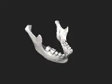 ![]() جمجمة الإنسان، الفك السفلي ملون باللون البنفسجي | |