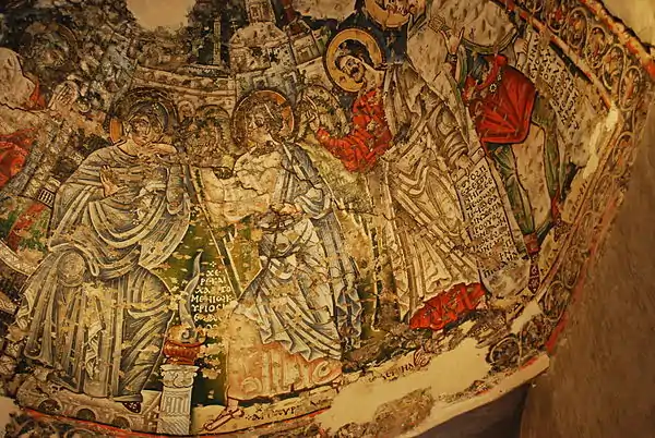 تصوير من القرن السادس لمريم العذراء كإمبراطورة بيزنطية.