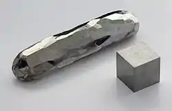 - Criteria used were density:[2] (1) above 3.5 g/cm3; (2) above 7 g/cm3; atomic weight: (3) > 22.98;[2] (4) > 40 (excluding s- and مستوى فرعي للجدول الدوري metals);[3] (5) > 200;[4] atomic number: (6) > 20; (7) 21–92;[5] chemical behaviour: (8) United States Pharmacopeia;[6][7][8] (9) Hawkes' periodic table-based definition (excluding the لانثانيداتs and أكتينيداتs);[9] and (10) Nieboer and Richardson's biochemical classifications.[10] Densities of the elements are mainly from Emsley.[11] Predicted densities have been used for At, Fr and Fm–Ts.[12] Indicative densities were derived for Fm, Md, No and Lr based on their atomic weights, estimated رابطة فلزية,[13] and predicted تعبئة متراصة crystalline structures.[14] Atomic weights are from Emsley,[11] inside back cover