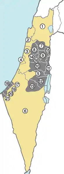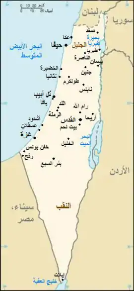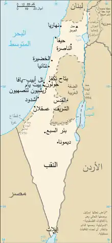 ![]() خارطة تبين حدود فلسطين التاريخية والحدود الحديثة للدول. خارطة تبين حدود فلسطين التاريخية والحدود الحديثة للدول. | |