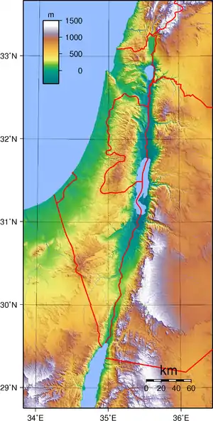 تتكون فلسطين جغرافيا من أربعة مناطق طبيعية واضحة هي:[59]