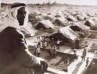وقد نشبت أول حرب بين العرب وإسرائيل في عام 1948 عقب إعلان قيام دولة إسرائيل على أرض فلسطين، حيث قامت قوات خمس دول عربية (مصر وسوريا والأردن ولبنان والعراق) بدخول فلسطين لمنع قيام الدولة العبرية على أرض فلسطين، واستمرت العمليات العسكرية حتى يناير/ كانون الثاني 1949 بعد أن سيطرت إسرائيل عمليا على الأجزاء التي أعطاها إياها قرار التقسيم 194 وأكثر منها. وفي ذاك التاريخ ولدت مسألة اللاجئين بخروج أكثر من 700 ألف فلسطيني من ديارهم إلى الضفة الغربية (التي اتبعت بالأردن لاحقا) وقطاع غزة (الذي ضمته مصر أيضا)، بالإضافة لدول الجوار والمهجر، ليبدأ الصراع العربي الإسرائيلي. في نكبة عام 1948 م، طُرِد وهُجِّر غالبيّة سكان المدن العربية منها فاستحالوا لاجئين حيث لم يسمح إلا للقليل منهم بالعودة إلى مدنهم، في حين صادرت دولة إسرائيل البيوت العربية التي هجرت من أهلها.[38]