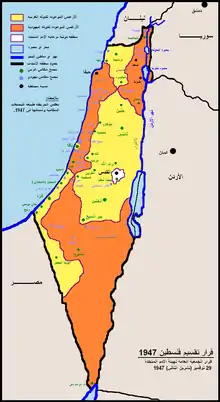 بدأ التوتر بين السكان العرب وبين المهاجرين اليهود يظهر في نهاية العشرينات من القرن الفائت، ووصل لذروته في منتصف الثلاثينات عندما أعلن الفلسطينيون الثورة الفلسطينية الكبرى عام 1936. قامت هيئة الأمم المتحدة عام 1947 بمحاولة لإيجاد حل الصراع العربي الإسرائيلي القائم على فلسطين، وقامت هيئة الأمم بتشكيل لجنة UNSCOP المتألّفة من دول متعدّدة باستثناء الدّول دائمة العضوية لضمان الحياد في عملية إيجاد حلّ للنزاع. أعطى قرار التقسيم 55% من أرض فلسطين للدولة اليهودية، وشملت حصّة اليهود من أرض فلسطين على وسط الشريط البحري (من إسدود إلى حيفا تقريبا، ما عدا مدينة يافا) وأغلبية مساحة صحراء النقب (ما عدا مدينة بئر السبع وشريط على الحدود المصرية). ولم تكن صحراء النّقب في ذاك الوقت صالحة للزراعة ولا للتطوير المدني، واستند مشروع تقسيم الأرض الفلسطينية على أماكن تواجد التّكتّلات اليهودية بحيث تبقى تلك التكتّلات داخل حدود الدولة اليهودية.[35][36]