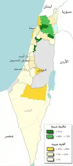 - عرب: يشكلون الغالبية الساحقة من عرب 48، ويتكلم معظمهم باللهجة الشامية الجنوبية المدنية. يتمركزون في النقب والجليل. يشكل منهم المسلمون السنة الغالبة، ويشكل المسيحيون منهم نسبة 9%، بينما يشكل الموحدون الدروز حوالي 8%، حيث بلغ عددهم حوالي 120,000 نسمة، ويتكلمون اللهجة الشامية الشمالية، ويتمركزون في الجليل والكرمل، ولهم ديانتهم الخاصة. ويندرج ضمن العدد أيضًا العرب البدو: عددهم 182,000 يتكلمون لهجة بدو النقب. يتمركزون في النقب والجليل ووسط إسرائيل. معظمهم من المسلمين السنة.[39]