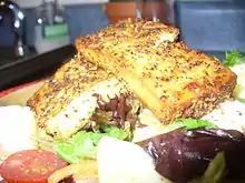 طبق من التوفو بفلفل الليمون، مقدم مع السلطة