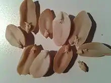 تنقسم بذور الفول السوداني إلى نصفين تظهر الأجنة مع النبتات والجذر البدائي.
