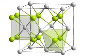 - لبلورات فلوريد الكادميوم بنية مكعبة، وتتبع نظام الفلوريت.[4] يكون للطبقات الرقيقة من بلورات فلوريد الكادميوم خاصة ضيائية تدعى Photoluminescence ضيائية ضوئية.[5]