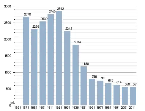 في سنة 1871 بلغ عدد السكان 2٬670 نسمة، وتطور العدد ليصل في سنة 2011 لـ 551 نسمة.