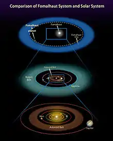 |CitationClass=تم تجاهله (مساعدة) They noted that the disc was centered on a cavity, which they suggested might have been swept out by planets. - "Fomalhaut's Kuiper Belt". Sky & Telescope. مؤرشف من الأصل في 18 مارس 2014. اطلع عليه بتاريخ 16 أكتوبر 2007. الوسيط