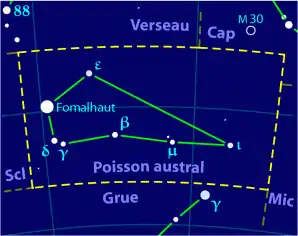 | كوكبة | الحوت الجنوبي (فم الحوت A+B), الدلو (فم الحوت C) |