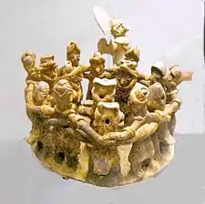 تُعرف قبور جزيرة جاينا عن طريق وفرة تماثيلها الصلصالية. تم العثور على بقايا إنسانية في الألف مقبرة تقريبًا التي تم التنقيب عنها (من أصل 20000 ألف مقبرة)[79] بجانب أواني زجاجية أو ملحية أو فخارية، وقطعة أو اثنتين من التماثيل الخزفية التي توضع فوق تابوت الميت أو بين يديه. إن الهدف وراء تلك التماثيل غير معروف، بسبب عدم تطابق السن والنوع، ولكنه من غير المرجح أن تكون بورتريهات للميت، وعلى الرغم من ذلك فالتماثيل اللاحقة كانت تمثل آلهة.[80]