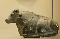 رأس الثور من قيثارة الملكة من قبر بوباي، أور، حوالي 2600 ق.م