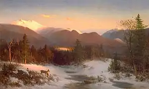 في الجزء الأول من القرن التاسع عشر، غامر فنانون بالذهاب إلى جبال وايت في نيو هامبشاير لرسم الاسكتشات والتصوير. انجذب العديد من الفنانين الأوائل إلى المنطقة بسبب مأساة عائلة ويلي عام 1826، التي فقد فيها تسعة أشخاص حياتهم في انهيار وحليّ. صورت هذه الأعمال المبكرة برية جبلية مثيرة ووحشية. يصف الدكتور روبرت ماكغراث لوحة توماس كول (1801–1848) بعنوان نظرة من بعيد على الانزلاق الذي دمر عائلة ويلي: «... تشير مجموعة الجذوع المكسورة والصخور المنحرفة، جنبًا إلى جنب مع العاصفة المتجمعة، إلى وحشية الموقع إذ يستحضر محيطًا ملائمًا للظلام والخراب».[1] أثارت الصور خيال الأمريكيين، خاصة هؤلاء من المدن الكبيرة في الشمال الشرقي، الذين سافروا إلى جبال وايت لمشاهدة هذه المشاهد بأنفسهم. وسرعان ما تبعهم آخرون: أصحاب النُزُل والكتاب والعلماء والمزيد من الفنانين. أصبحت جبال وايت نقطة جذب رئيسية للسياح من ولايات نيو إنجلاند وخارجها. كما أتاح تداول اللوحات والمطبوعات التي تصور المنطقة بين أولئك الذين لم يتمكنوا من الزيارة، بسبب نقص الوسائل أو المسافة أو الظروف الأخرى، تقدير جمالها.