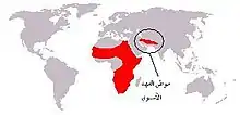 ![]() موطن الفهد الآسيوي الحالي (بالأخضر الداكن) والتاريخي (بالأخضر الفاتح) | |
