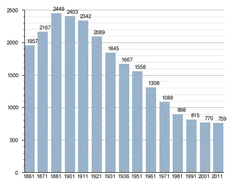 في سنة 1861 بلغ عدد السكان 1٬957 نسمة، وتطور العدد ليصل في سنة 2011 لـ 759 نسمة.