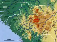خريطة فوتاجلون مع الأنهار الرئيسية.