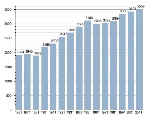 في سنة 1861 بلغ عدد السكان 1٬924 نسمة، وتطور العدد ليصل في سنة 2011 لـ 3٬509 نسمة.