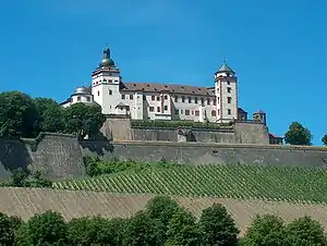 يشكل معلما بارزا على نهر ماين في فورتسبورغ. وقد كان حصنا منذ العصور القديمة. بعد غزو ملك السويد غوستاف الثاني أدولف المنطقة عام 1631 تم إعادة بناؤه كقلعة بأسلوب الباروكي. اليوم هي حديقة ومتحف. وتضم القلعة كنيسة السيدة مريم العذراء (marienkirche) المبنية عام 704 م على قمة موقع سلتي سابق، وفي القرن الثالث عشر أحيطت بأول تحصينات. وفي عام 1482، كان قلعة الرئيسية مطوقة بجدار الدائري من القرون الوسطى مع بوابة شيرينبيرغ.