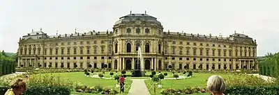 - إقامة فورتسبورغ (Würzburg Residenz): قصر الأسقف الحاكم في فورتسبورغ، يبدو أن الأساقفة قد سئموا في أوائل القرن الثامن عشر من الحياة في قلعة مارينبيرغ في مثل ذلك العلو وبين الحيطان الباردة، لذا فوضوا المهندس المعماري "يوهان بالتازار نويمان" لأن يصمم لهم مقراً فخماً للغاية. وانتهى الأمر إلى قصر أسقفي باهٍ يتلألأ كالألماس على الحزام الأخضر الذي يحيط به، وقد وصفه نابوليون بونابارت ذات مرة بـ"أجمل بيت قساوسة في أوروبا". أُنشأ المركب الواسع على الطرف الشرقي من المدينة بتكليف من اثنين من الأمراء الأساقفة هما الأخوين يوهان فيليب فرانس وفريدريش كارل فون شونبورن. استمر البناء بين عامي 1720 و 1744 وأشرف عليه العديد من المهندسين المعماريين، بما فيهم يوهان لوكاس فون هيلدبرانت ويوهان ماكسيمليان فون فيلش. بيد أنه يرتبط أساسا باسم بالتازار نويمان، مصمم درجه البروكي الشهير. ومن أهم معالم القصر مايلي :