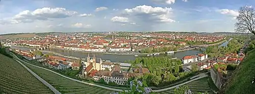 و القلعة الموجودة على تلة تمر بجسر ماين القديم (alter Mainbrücke)، الذي أقيم بين عامي 1473-1543 ليحل محل جسر رومانسكي دُمر. وقد تم تزينه بالتماثيل المعروفة للقديسين حوالي عام 1730