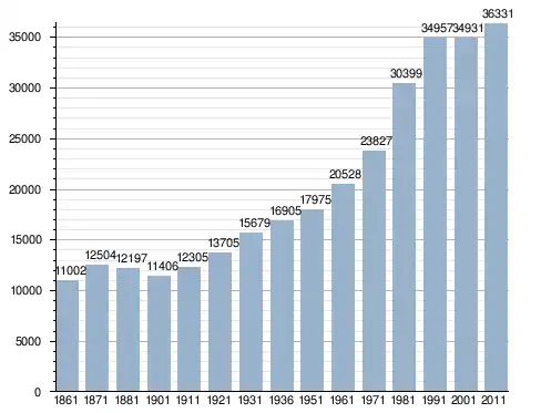 في سنة 1861 بلغ عدد السكان 11٬002 نسمة، وتطور العدد ليصل في سنة 2011 لـ 36٬331 نسمة.