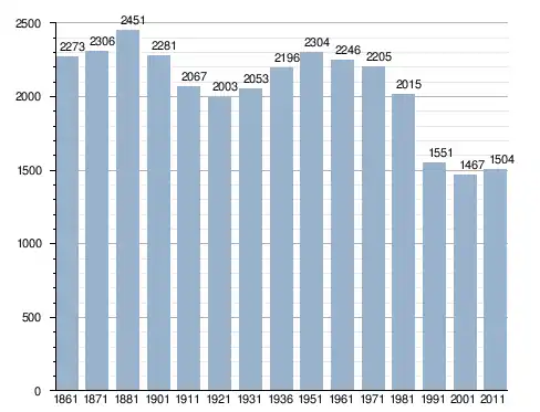 في سنة 1861 بلغ عدد السكان 2٬273 نسمة، وتطور العدد ليصل في سنة 2011 لـ 1٬504 نسمة.