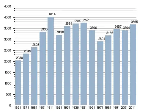 في سنة 1861 بلغ عدد السكان 2٬030 نسمة، وتطور العدد ليصل في سنة 2011 لـ 3٬665 نسمة.