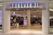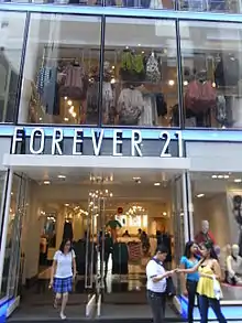 فوريفر 21 (FOREVER 21) هي سلسلة محلات تجارية لبيع الأزياء بالتجزئة يقع مقرها في لوس أنجلوس، كاليفورنيا في الولايات المتحدة. بدأت العلامة كمتجر صغير بمساحة 900 قدم مربع (أي 84 متر مربع) بضواحي هايلاند بارك (لوس أنجلوس) تحت اسم متجر Fashion 21 عام 1984، وبعد مثابرة توسعت خطوط الشركة لتصبح مالكة لأكثر من 600 متجر وعدة فروع أخرى من ضمنها Forever 21 و Forever XXI و Love 21 و Heritage في عدة دول من الأمريكتين وآسيا والشرق الأوسط والمملكة المتحدة.[3]