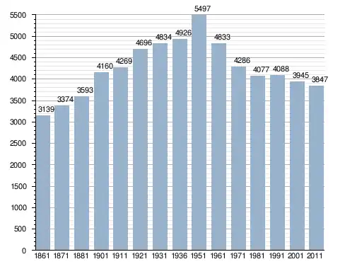 في سنة 1861 بلغ عدد السكان 3٬139 نسمة، وتطور العدد ليصل في سنة 2011 لـ 3٬847 نسمة.