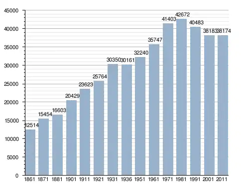في سنة 1861 بلغ عدد السكان 12٬514 نسمة، وتطور العدد ليصل في سنة 2011 لـ 38٬174 نسمة.