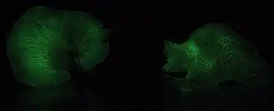 و على الرغم من إنها ذكرت في العديد من المراجع الأدبية، لكن لم يثم اكتشاف السبب حتي عام 1823 , و تم فحصها عندما كان الخشب الداعم في المناجم يتوهج وتبين إن التوهج كان بسبب نمو الفطريات