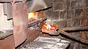 قطعة خامة معدنية متوهّجة عليها بوراكس منصهر