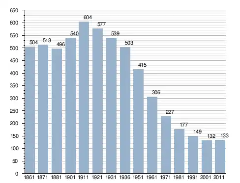 في سنة 1861 بلغ عدد السكان 504 نسمة، وتطور العدد ليصل في سنة 2011 لـ 133 نسمة.