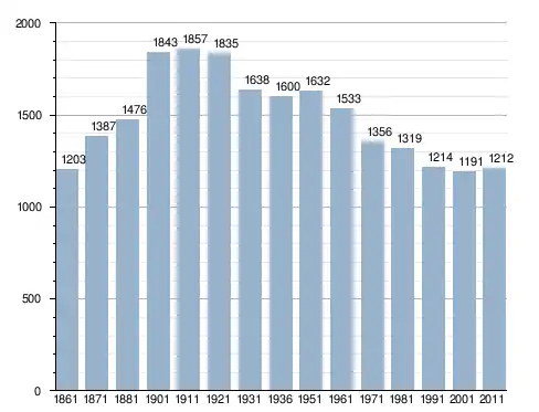 في سنة 1861 بلغ عدد السكان 1٬203 نسمة، وتطور العدد ليصل في سنة 2011 لـ 1٬212 نسمة.